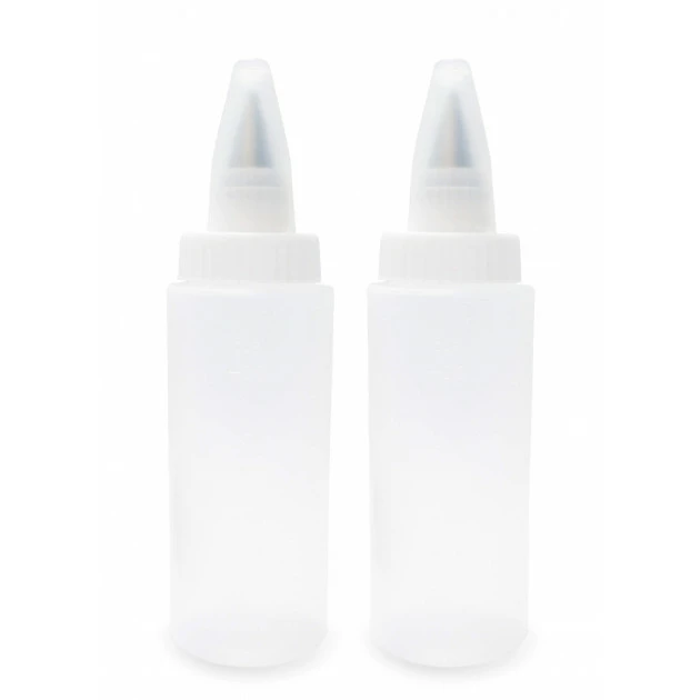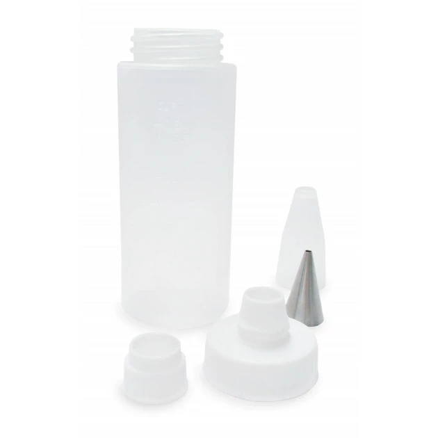 Envie d’un glaçage précis et raffiné simplement ? Optez pour ce lot de 2 flacons verseurs souples + 2 douilles à glaçage ScrapCooking. Les flacons verseurs plus communément appelés squeezer sont fabriqués en plastique souple permettant ainsi une manipulation facile. D’une contenance de 185 ml, il vous suffira de presser le flacon pour faire sortir votre glaçage.