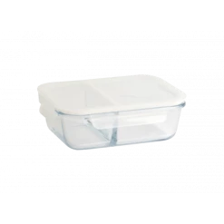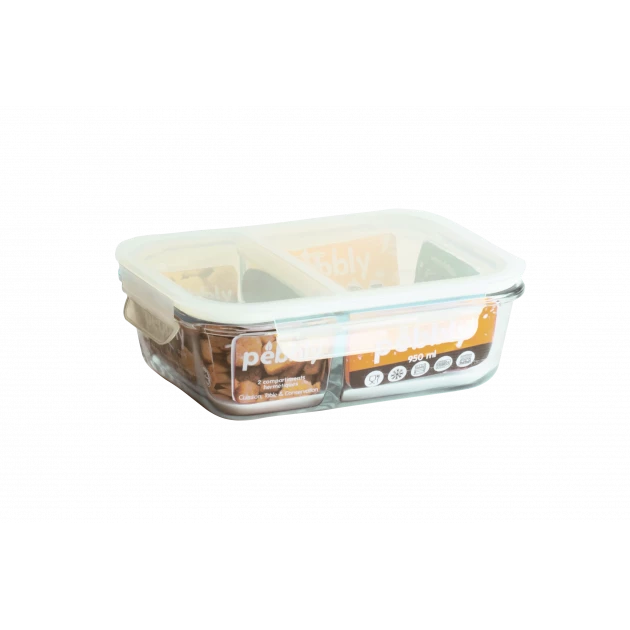 Parfaite lunch box, la boîte de conservation en verre avec compartiments rectangle Pebbly saura s’adapter à vos besoins en vous proposant 2 compartiments parfaitement hermétiques !