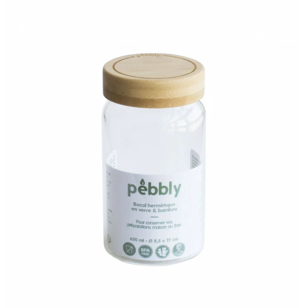 Si vous êtes à la recherche de bocaux en verre, découvrez la boîte de conservation en verre et bambou rond Pebbly qui saura vous garantir une conservation saine et efficace !