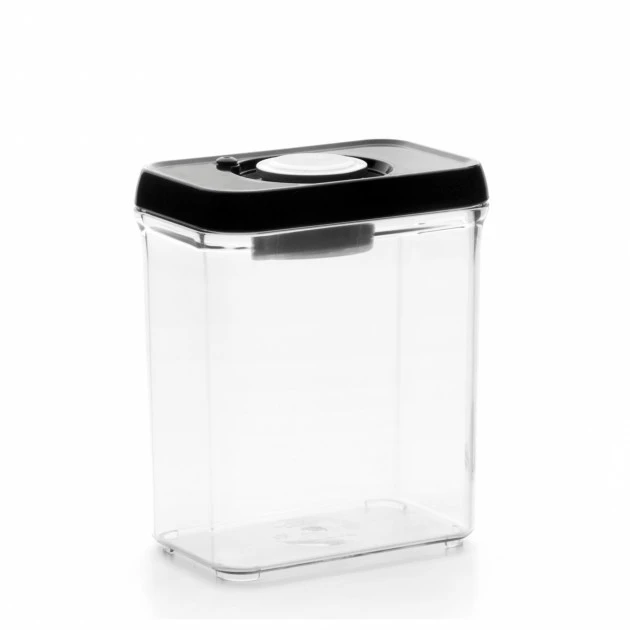 Pour fermer hermétiquement cette Boîte de Conservation 2 L, rien de plus simple : il vous suffit de placer le couvercle sur la Boîte Alimentaire puis d’appuyer sur le bouton pour faire sortir l’air.