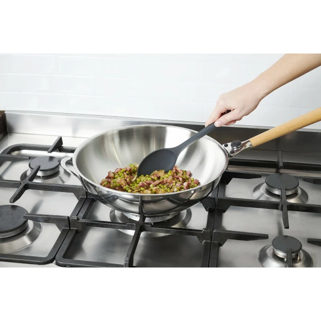 Ustensile de confiance, la cuillère silicone est conçue d’un seul bloc, permettant d’éviter l’accumulation de bactéries entre la tête et le manche. La cuillère offre ainsi une hygiène irréprochable, d’autant plus qu’elle est compatible avec le lave-vaisselle. Pratique, le manche de la cuillère silicone noir possède un trou pour l’avoir toujours à portée de main en la suspendant dans votre cuisine. Droitier ou gaucher ? Peu importe avec la cuillère de cuisine Mastrad puisque celle-ci est ambidextre !