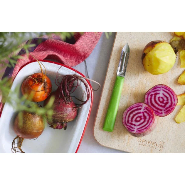 Courges, pomme de terres, pommes et prunes n’ont qu’à bien se tenir ! Avec votre éplucheur Opinel en main, vous ne ferez qu’une bouchée de ces ingrédients. Une lame en inox performante associée à un manche en polymère robuste ; voici les matériaux qui constituent l’éplucheur N°315.
