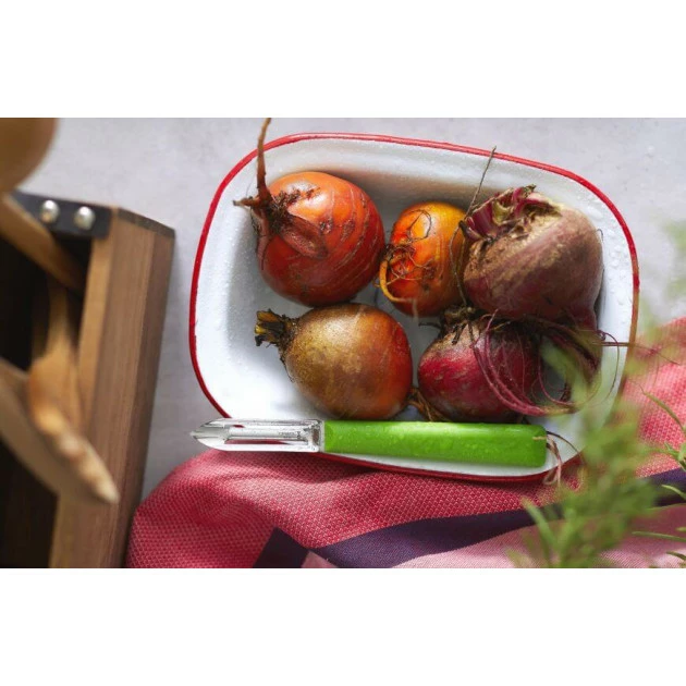 Issu de la collection Les Essentiels, cet épluche-légumes est à la base d’un grand nombre de recettes plus variées les unes que les autres. Que vous soyez un cuisiner du dimanche, ou un professionnel des fourneaux, cet ustensile vous sera utile. Facile à manier et à entretenir, l’éplucheur vert vous sera un allié précieux.