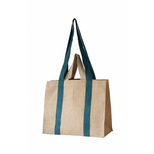 Son design naturel en fibre de jute ainsi que ses longues anses en coton bio tissé couleur bleu jean, apportent une touche tendance à ce sac cabas. Avec ses dimensions de 41 cm de long, 20 cm de large et sa hauteur de 35 cm ce grand sac sera le compagnon parfait pour tous types d’activités.
