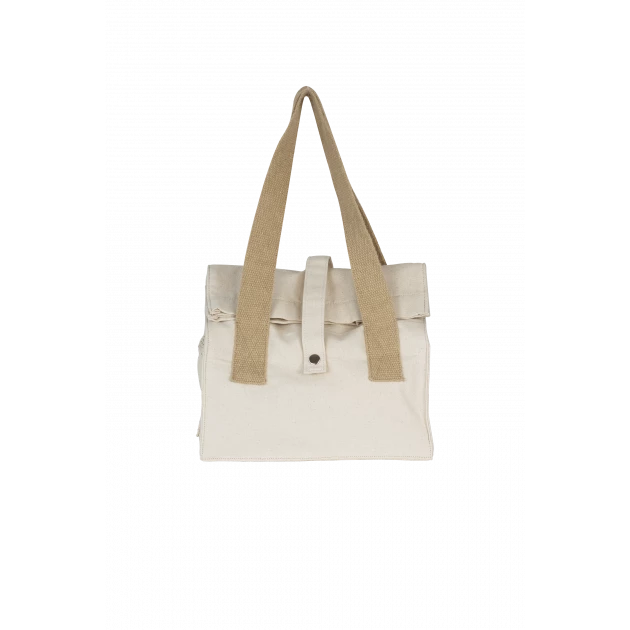 Proposé dans une teinte naturelle avec des anses en coton tissé et un corps en coton bio couleur crème, ce sac déjeuner est pensé pour répondre à toutes vos envies. D’une grande capacité de 13,5 L ce sac repas dispose de deux poches en filet à l’intérieur et à l’extérieur pour y mettre couverts, serviettes et autres accessoires.