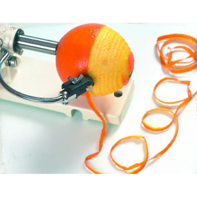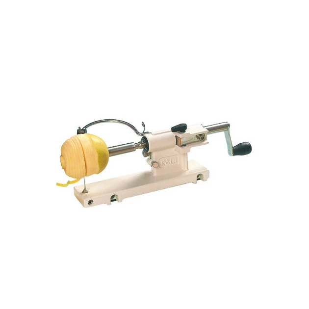 Le Pèle pomme Kali pèle, coupe et évide les fruits à trognons en une seule opération. Peut être utilisé pour éplucher les pommes de terre et les trancher (chips…), pour faire des zestes de citrons et d’oranges…