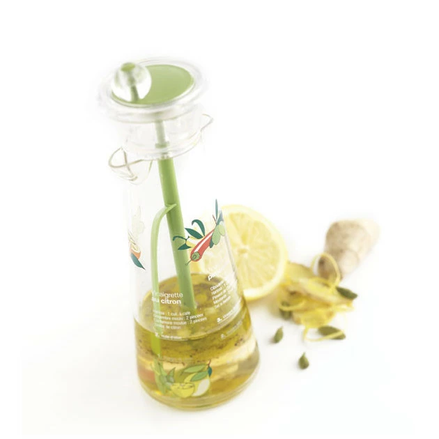 Réalisez de délicieuses vinaigrettes pour vos salades avec ce Mélangeur à Vinaigrette Mastrad. Rien de plus simple : versez vos ingrédients dans le récipient, tournez la manivelle et voilà votre sauce prête à être goûtée ! Cet ustensile est muni de 2 becs verseurs et peut contenir jusqu’à 300 ml de préparation.