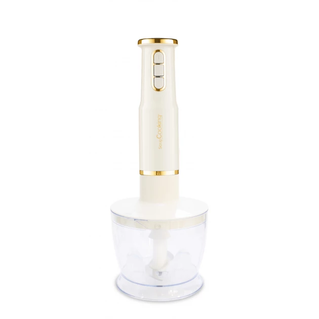 Proposé dans un design à la fois sobre et élégant, ce hachoir mixeur se pare d’une couleur crème finition mate avec un liseré doré pour la touche “wouah”.
