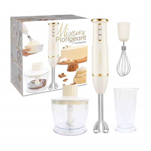 D’une puissance de 600 watts, grâce à ses accessoires et ses 3 vitesses, vous pourrez facilement réaliser tous types de préparations ou vous inspirer de celles présentes dans le livret recette fourni avec le mixeur.