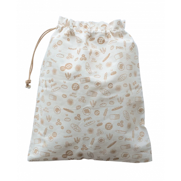D’une dimension de 50 cm de long sur 45 cm de large, ce sac à pain dispose d’un cordon de serrage afin de garder vos aliments à l’abri de l’air et de l’humidité. Léger et résistant, ce sac réutilisable est lavable à la main en dessous de 30°C. Proposé dans un design naturel avec des motifs liés au thème du pain ce sac en coton est une parfaite alternative écologique aux sac en plastique.