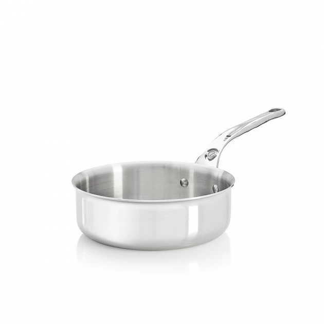 Dimensions généreuses, arrondi intérieur, bord verseur, manche ergonomique, lignes élégantes, matière multicouches (7 couches pour 2,8 mm d’épaisseur), fabriqué en France, tous feux et Induction.